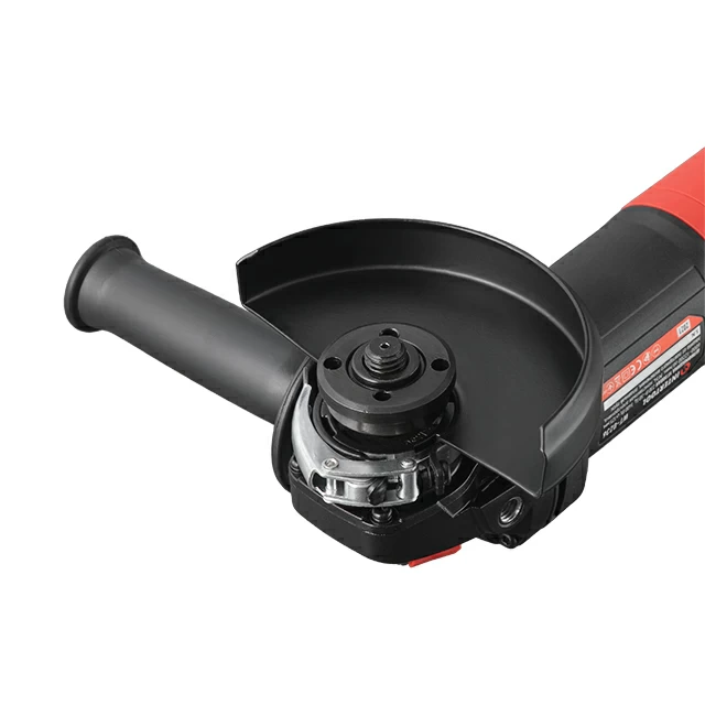 Шестерня конічної пари кріпиться до валу методом гарячого пресування, що забезпечує відсутність люфтів при передачі обертання від двигуна до оснащення. Болгарка сумісна з дисками діаметром 125 мм з посадковим отвором 22.2 мм, це дозволяє без проблем підібрати до неї оснащення стандартних розмірів.