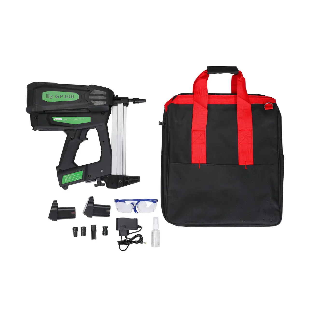 Пистолет, сумка, акк. батарея - 2шт, зарядное устройство, защитные очки, инструкция. |
